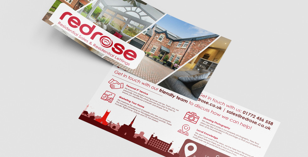 One example of this is the ‘DL’ leaflets we designed, printed and delivered to over 10,000 homes across the Chorley and Leyland area, these were created to inform residents of the many benefits of selling their home with Redrose.